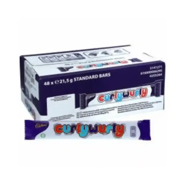 De Cadbury Curly Wurly 48×21,5g bestaat uit 48 individueel verpakte karamelvlechten, doordrenkt met een heerlijke laag romige