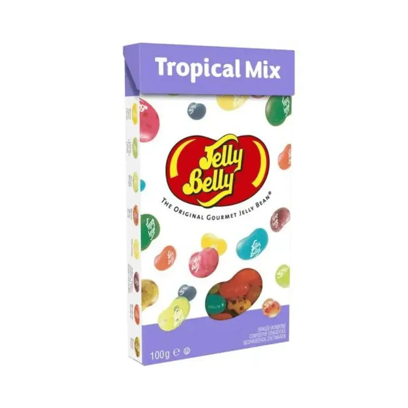Jelly Belly Tropical Mix 100g is een heerlijk assortiment tropische fruitsmaken die je smaakpapillen meenemen naar een zonnig