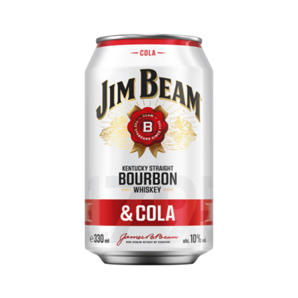Geniet van de ongecompliceerde kracht van Jim Beam Bourbon whiskey & cola, Dit handzame blikje van 330 ml biedt jou de iconische Jim Beam & Cola, reeds gemixt en met 10% alcoholvolume, zodat je direct kunt genieten van deze beproefde combinatie.