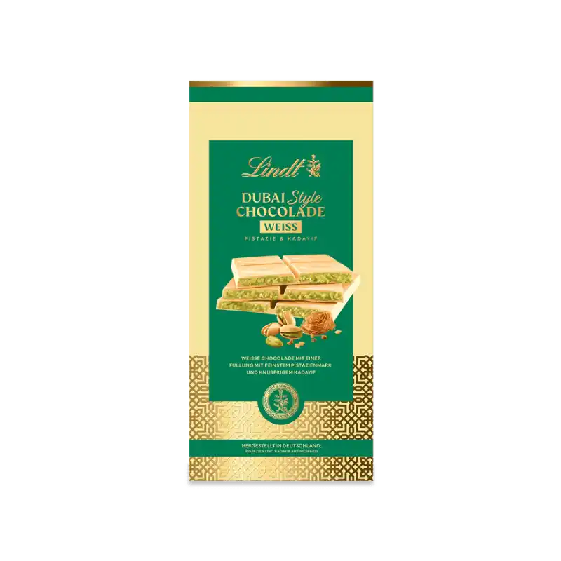 De Lindt Dubai Style Witte Chocoladereep is niet zomaar een chocoladereep; het is een culinaire ervaring die geïnspireerd is door de