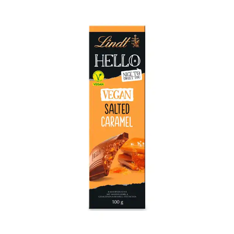 Ervaar de onweerstaanbare smaak van de Lindt Hello Vegan Gezouten Karamel 100g , een ware traktatie voor de zintuigen!