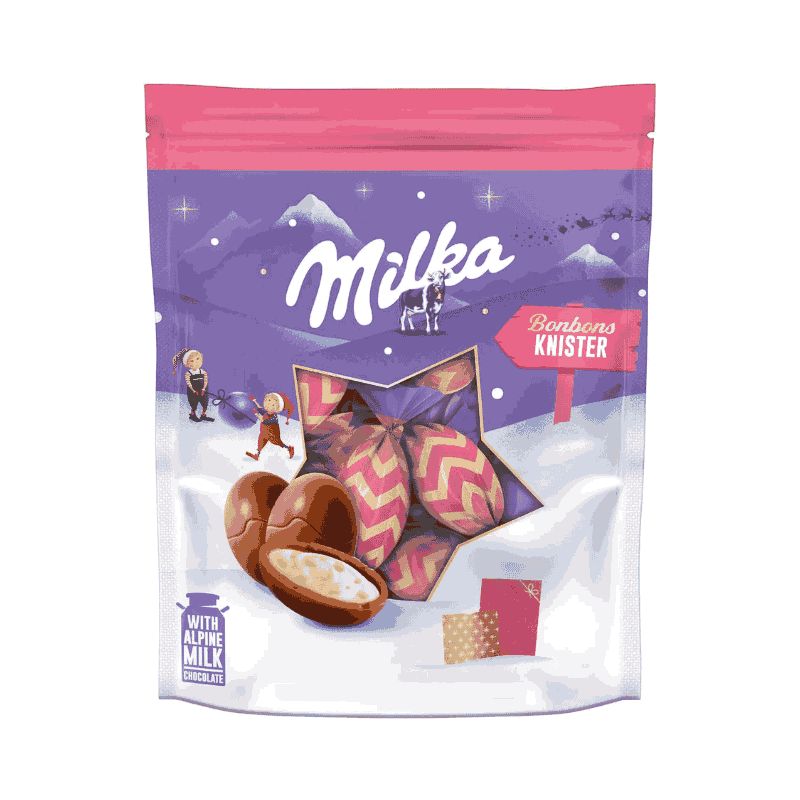 Ervaar de magie van de feestdagen met Milka Bonbons Knister, een heerlijke traktatie die van elk moment een feest maakt!