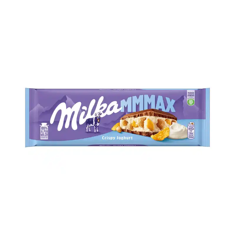 Milka Mmmax Crispy Yoghurt,de perfecte combinatie van romig en knapperig, zoet en pittig, waardoor je naar meer verlangt.