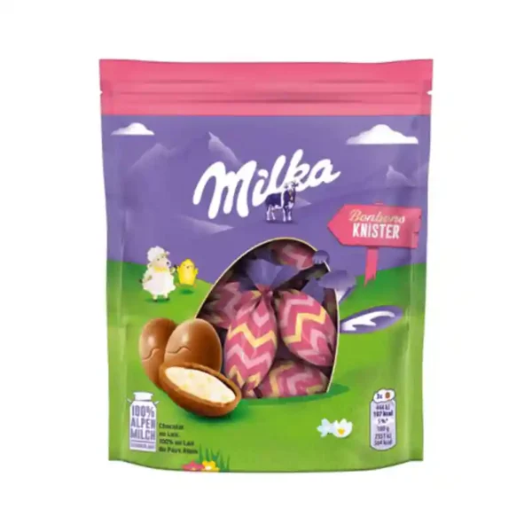 Geniet van de heerlijke smaak van Milka paaseitjes Knister, een perfecte traktatie voor de feestdagen! Elk zakje van 86 g is gevuld met een harmonieuze mix van romige chocolade en een verrassende twist die je smaakpapillen zal doen tintelen.