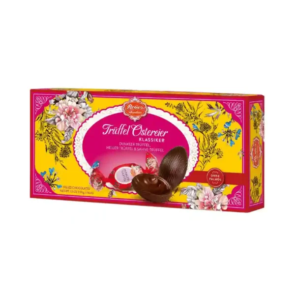 Geniet van de heerlijke smaak van Pasen met Reber Paaseieren Truffels 100g .