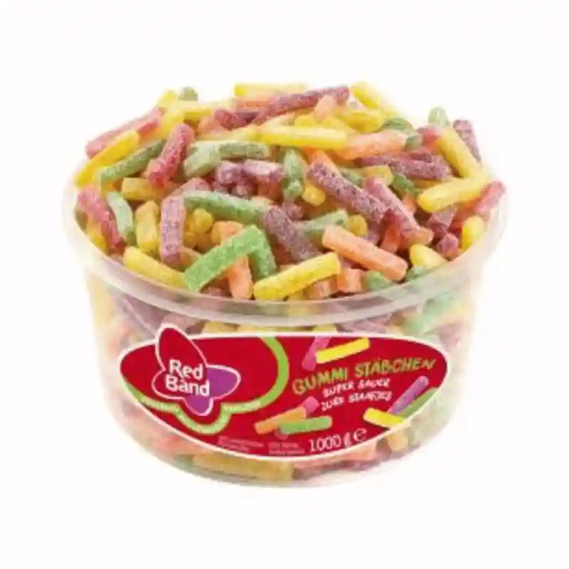 Voor een pittige kick die moeilijk te weerstaan is, kun je genieten van Red Band Rubber Sticks Super Sour , de ultieme zure