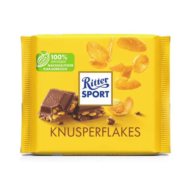 Vervaardigd met 100% cacaoboter en melk van topkwaliteit, belooft Ritter Sport Cornflakes een superieure chocoladebeleving.