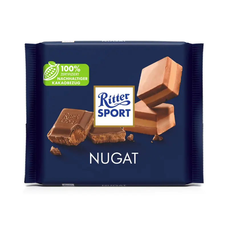De Ritter Sport Nougat 100g vertegenwoordigt de essentie van een praline in de vorm van een chocoladereep. Deze traktatie, vervaardigd uit fijne melkchocolade, herbergt een uitmuntende nougatvulling die zacht wegsmelt en de smaakpapillen streelt met een verfijnd nootachtig aroma.