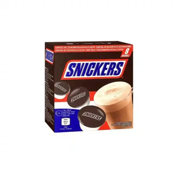 Elk pakket bevat 8 handige pods, perfect gemaakt om de onmiskenbare smaak van Snickers te leveren in een heerlijk chocoladedrankje.