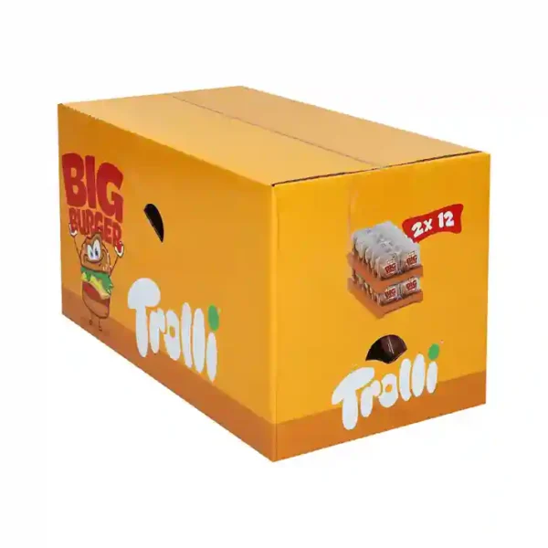De Trolli Big Burger 24x50g is hier, de onweerstaanbaar heerlijke ‘Fast-Sweet’,met een hoogte van ongeveer 4 cm is deze unieke creatie een echt feest.