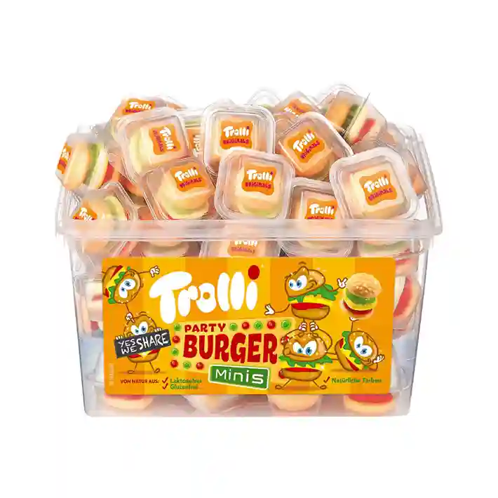 De Trolli party burger mini’s zijn de perfecte snack voor wanneer je trek krijgt.