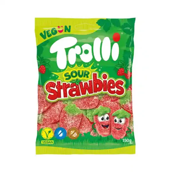 Trolli Zure Aardbeien Vegan 150g , zien er niet alleen uit als de zoete struikvruchten.