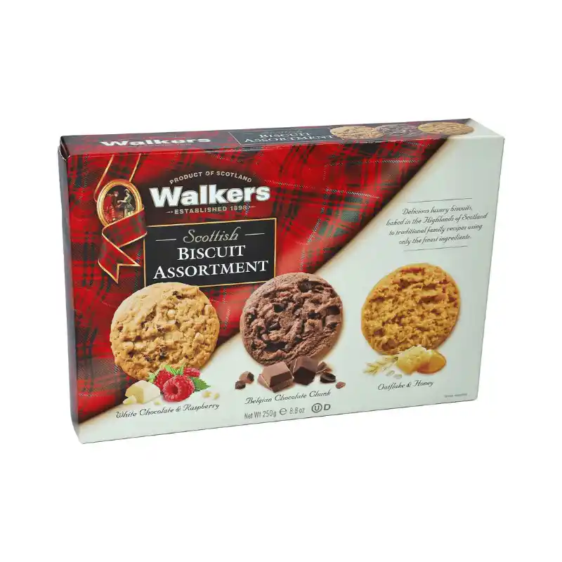 Ontdek de verfijnde wereld van Walker’s Scottish Biscuit Assortment, een onweerstaanbare mix van drie luxe varianten die elke