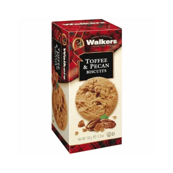 Til je koekjesspel naar een hoger niveau met Walkers Toffee & Pecan Biscuits ,een heerlijke combinatie van zoete en nootachtige smaken bij elke hap.