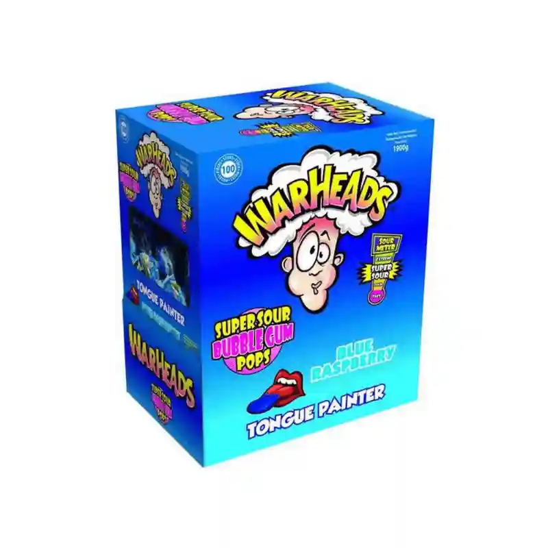 Ervaar een explosie van smaak met de Warheads Super Sour Bubble Gum Pops 100 x 19g .